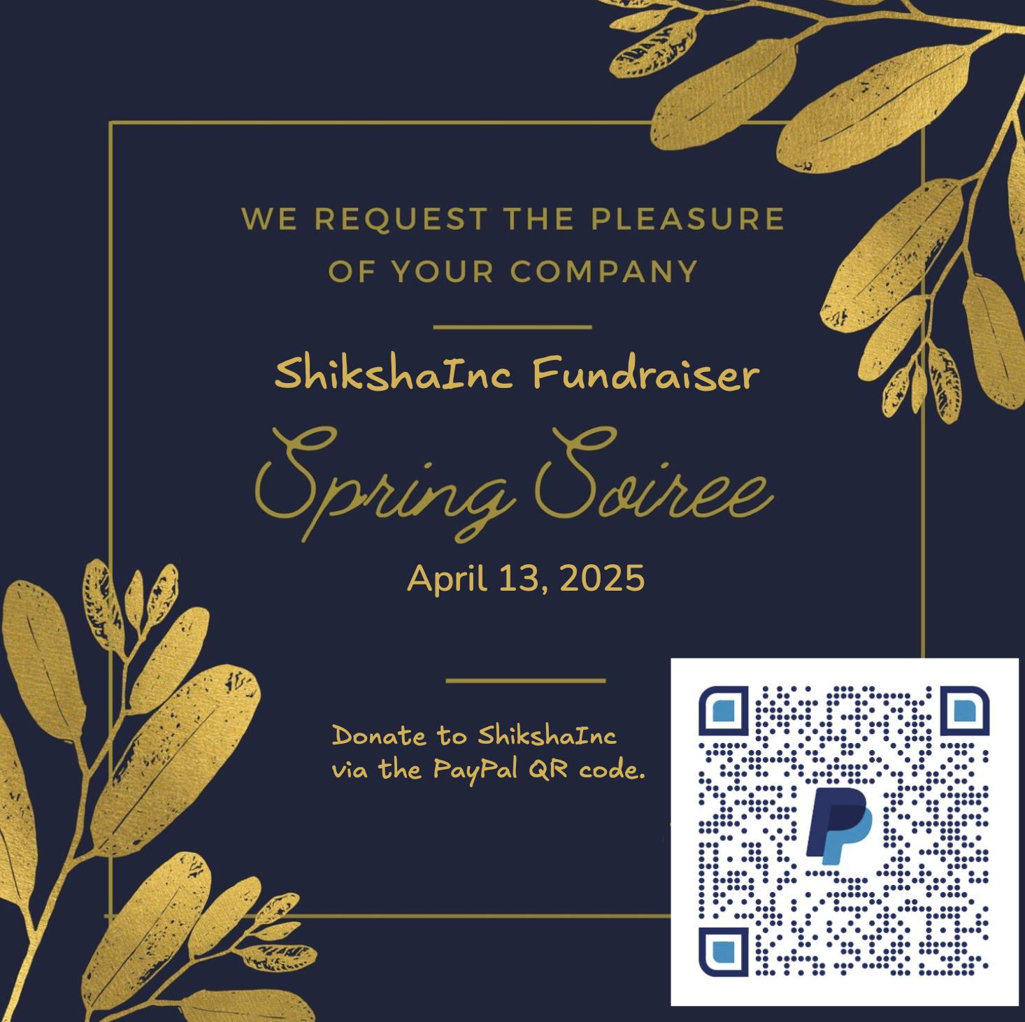 Spring 2025 Fundraiser Event April 13, 2025 |Las Vegas, NV Our next fundraiser event is on April 13th, 2025 in Las Vegas, NV. Location: TBD Donate to ShikshaInc during this event via PayPal at this QR Code: